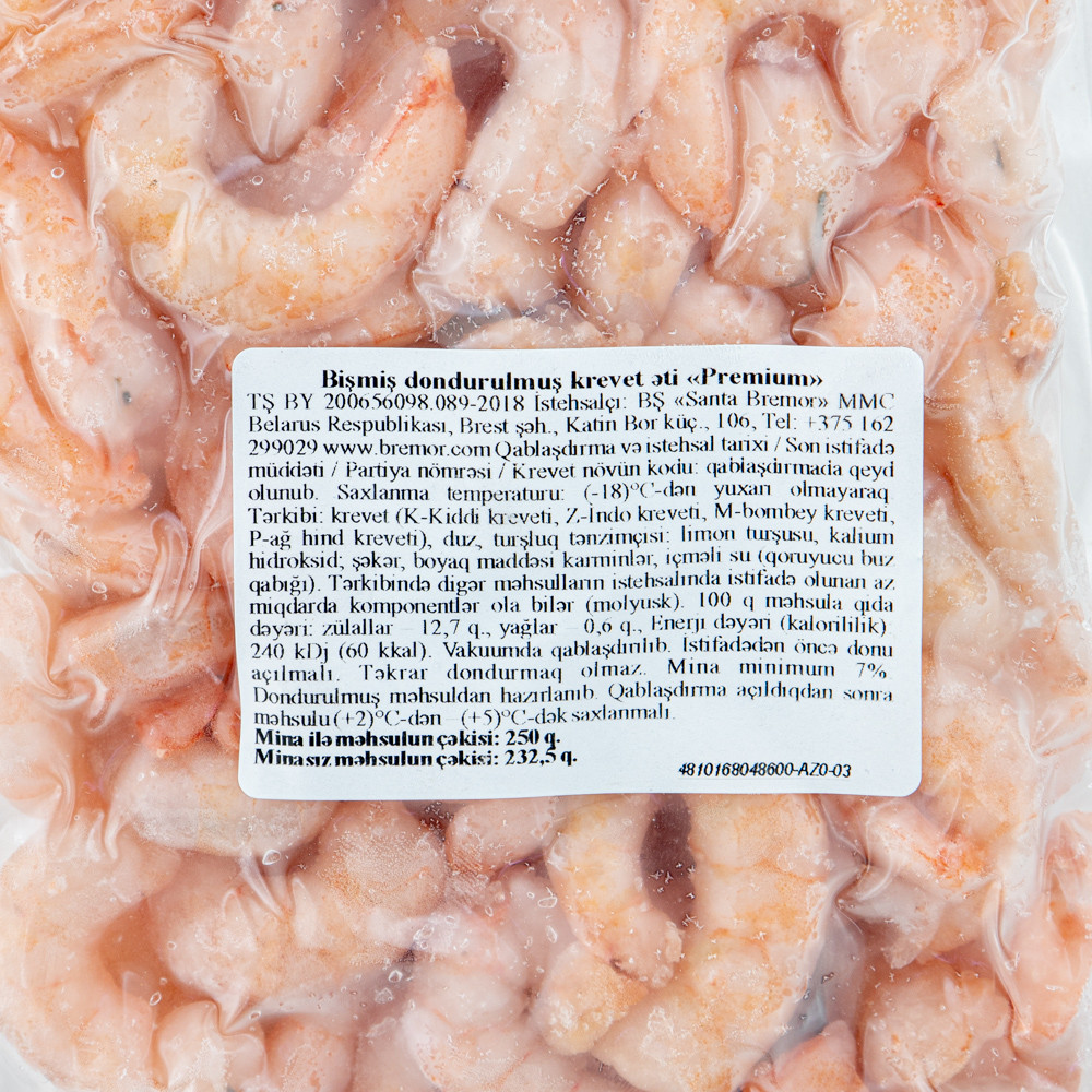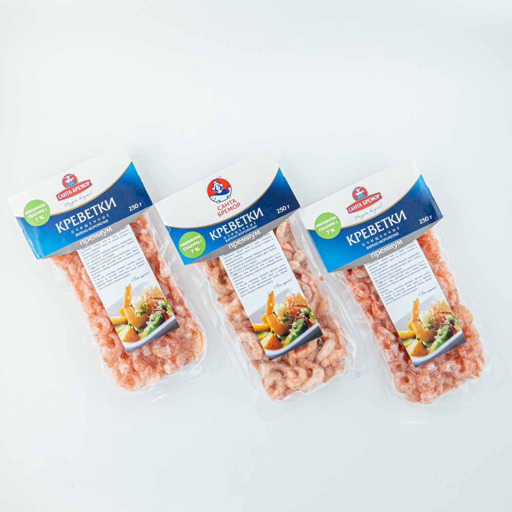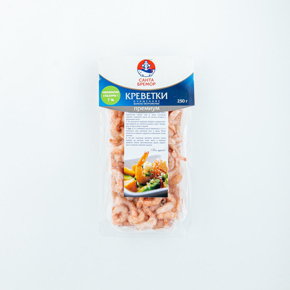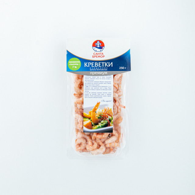100/200 Qaynadılmış təmizlənmiş krevetlər 250 qr "Santa Bremor"