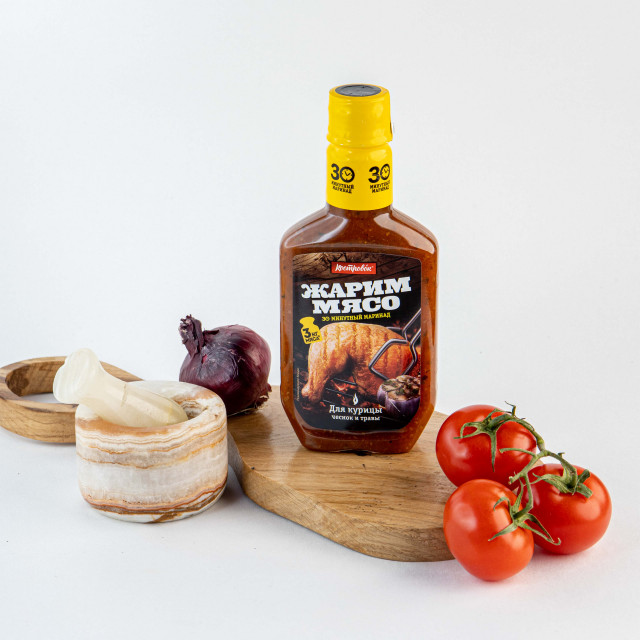 Tərkibi: Karamel nişastası siropu, içməli su, incə üyüdülmüş qurudulmuş sarımsaq, duz, şəkər, qatılaşdırıcılar (E1442, E412), incə doğranmış qurudulmuş çili bibəri, turşuluq tənzimləyicisi (E260, E330), dad və ətir gücləndirici (E621), konservant (E211) ), sarımsaq ekstraktı, boya (E160c).
