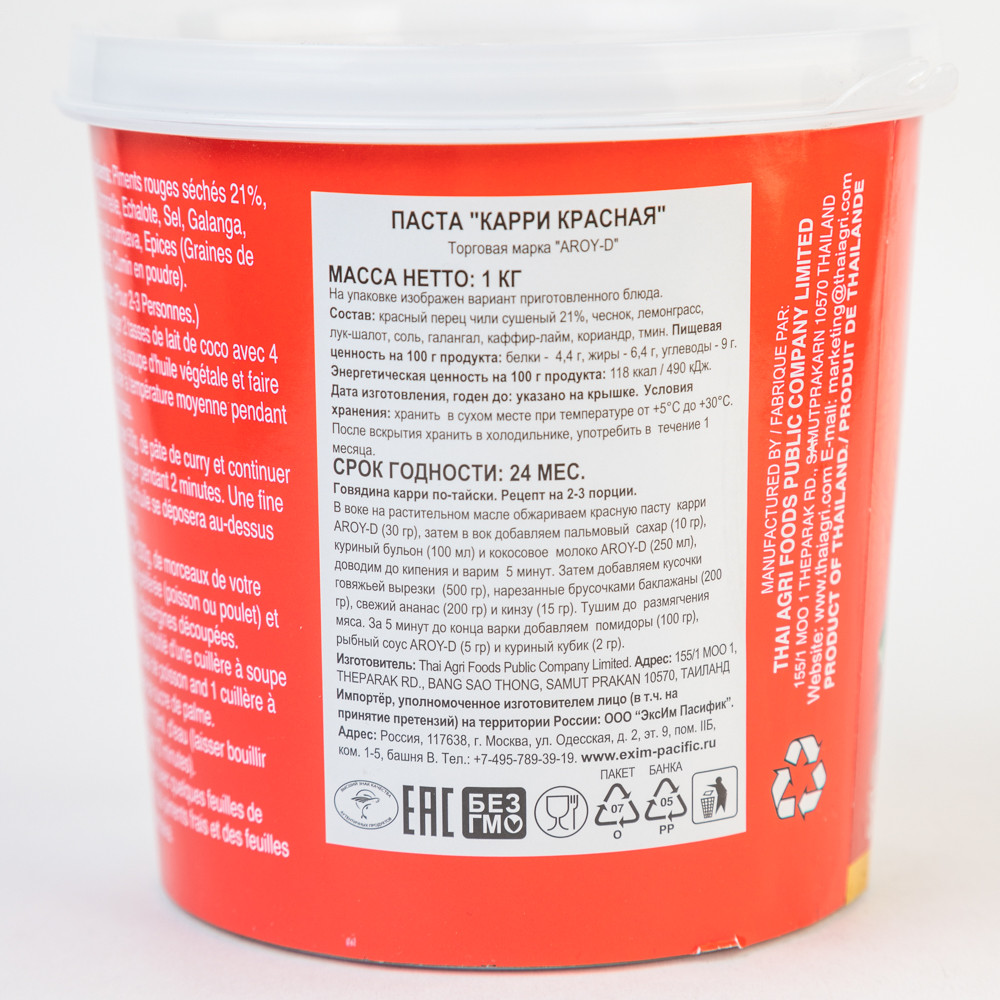 Aroy-qırmızı köri pastası- yüngül ədviyyatlı pastadır və ət köriləri və lobya köriləri ilə əla gedir. Qırmızı köri pastası isti, ədviyyatlı bir ləzzətə malikdir və bir çox Asiya yeməklərinə ədviyyat kimi əlavə edilir. Karri pastasını qalan inqrediyentlərə əlavə etməzdən əvvəl ətirinin inkişaf etməsi və dadını artırmaq üçün əvvəlcə qızardılır. Körilərin klassik olduğu ənənəvi Tay mətbəxi, köri pastası kokos kremində, daha dəqiq desək, kremin qaynadılması prosesində ayrılan yağda qızardılır.