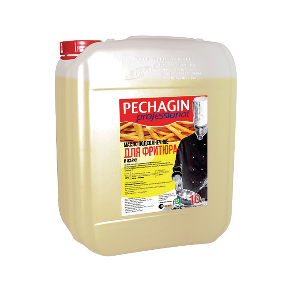 Refined deodorized sunflower oil for deep frying Pechagin is characterized by a slow oxidation process, which allows the oil to be used 2 times longer than conventional refined sunflower oil. It contains vitamin E (a natural antioxidant), thanks to which it has a high resistance to oxidation and prolongs the use, unlike other oils. The optimum temperature for use is 175-180 degrees.