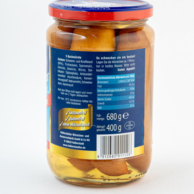 Ingredients: Pork and beef 80%, water, salt. dextrose, spices, antioxidant, ascorbic acid, pig intestines, soot aroma.