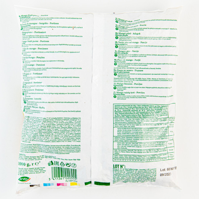 Storage conditions: Products are stored in dry, clean freezers at -18°C. Remove the frozen fruit puree from the package and thaw at room temperature (2.5 hours) or in the refrigerator overnight. Fast defrosting is possible with a microwave oven when defrosting. Once thawed, store in the refrigerator and consume within 24 hours.