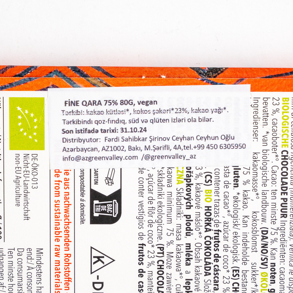 Ingredients: cocoa mass*, coconut sugar* 23%, cocoa butter*.