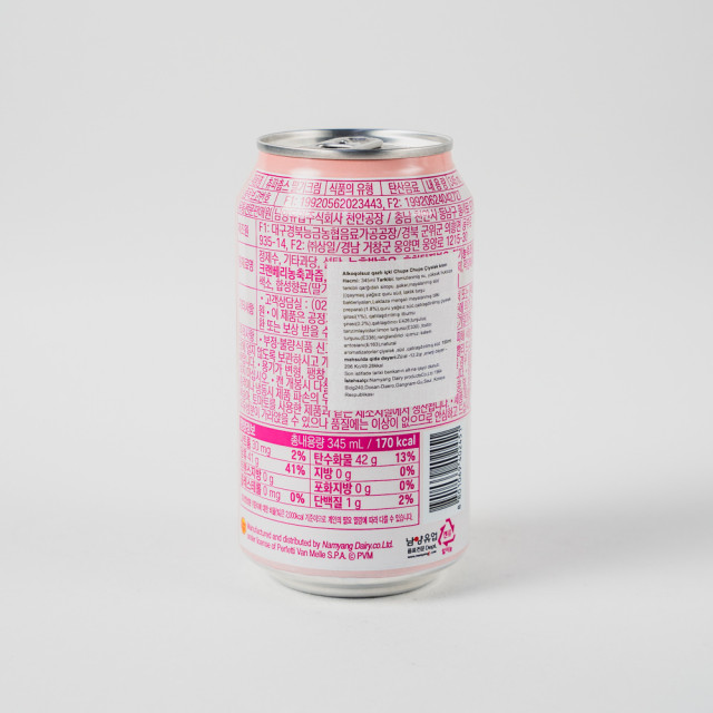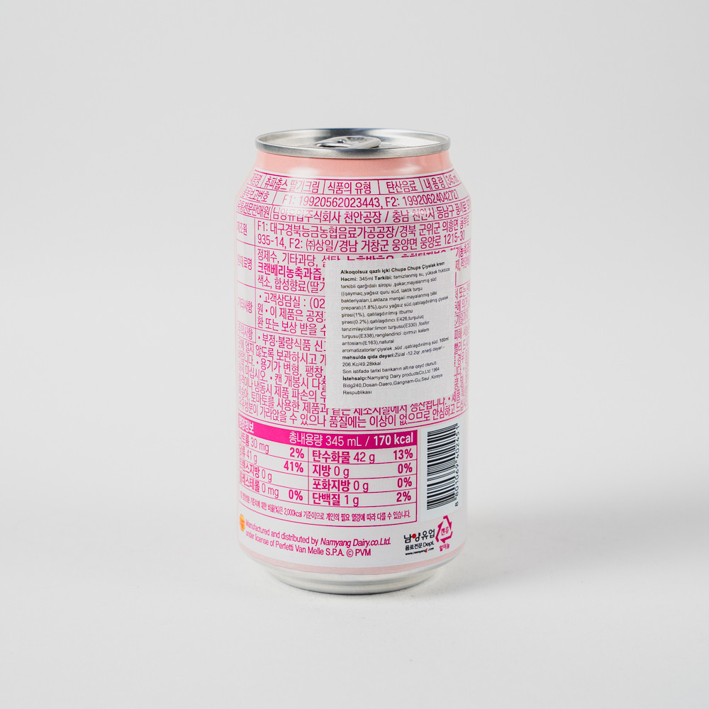 Ingredients: prepared water, high fructose corn syrup, sugar, fermented milk (milk, skimmed milk powder, lactic acid bacteria, lactose), skimmed milk powder, strawberry fruit juice concentrate (1%), cranberry fruit juice concentrate (0.2 %), carbon dioxide, stabilizer E426, acidity regulators citric and phosphoric acids, dye E163, natural flavors: strawberry, milk, condensed milk.
