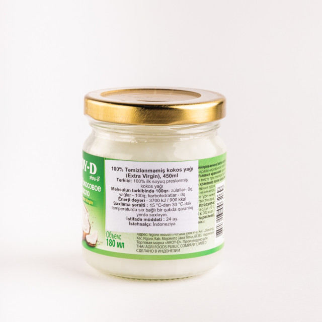 Кокосовое масло Extra Virgin AROY-D - отличная альтернатива сливочному или растительному маслу. Великолепное дополнение к Вашим любимым напиткам и десертам. Это масло можно использовать не только на кухне, оно также является отличным косметическим средством!.