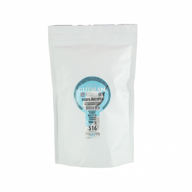 Йогуртовая пудра выглядит как очень мелкий кремовый или желтоватый порошок, а пахнет приятно, как свежий йогурт. Вкус у нее нежный молочный. Ее можно использовать в тех случаях, когда обычный йогурт не подходит. Например, если он создаст лишнюю влажность, которая в рецепте не нужна. Порошок хорошо растворяется в жидкостях комнатной температуры и вводится в эмульсию. При смешивании с сиропом, сухим молоком, растительными сливками образует однородную кремовую структуру.
